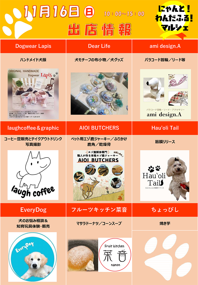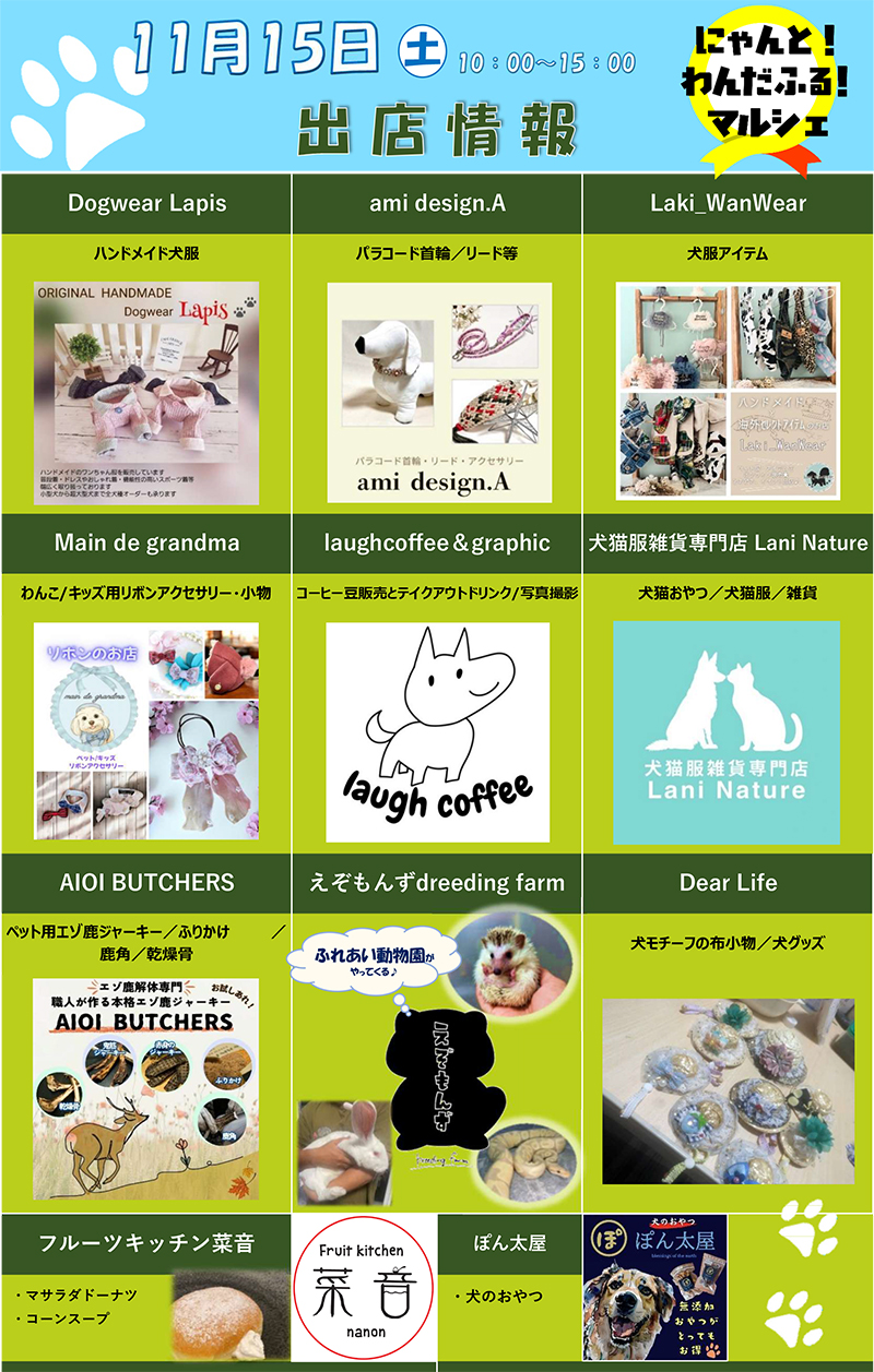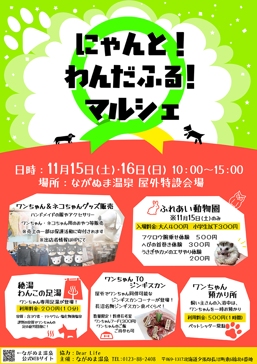11月15日(土)・16日(日)の2日間ながぬま温泉屋外特設会場にてにゃんと!わんだふる!マルシェを開催します。
